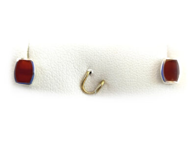 Paire de clous d’oreilles, en forme de tonneaux, avec plaques de cornaline, poids 0,86 g, format 7×6 m