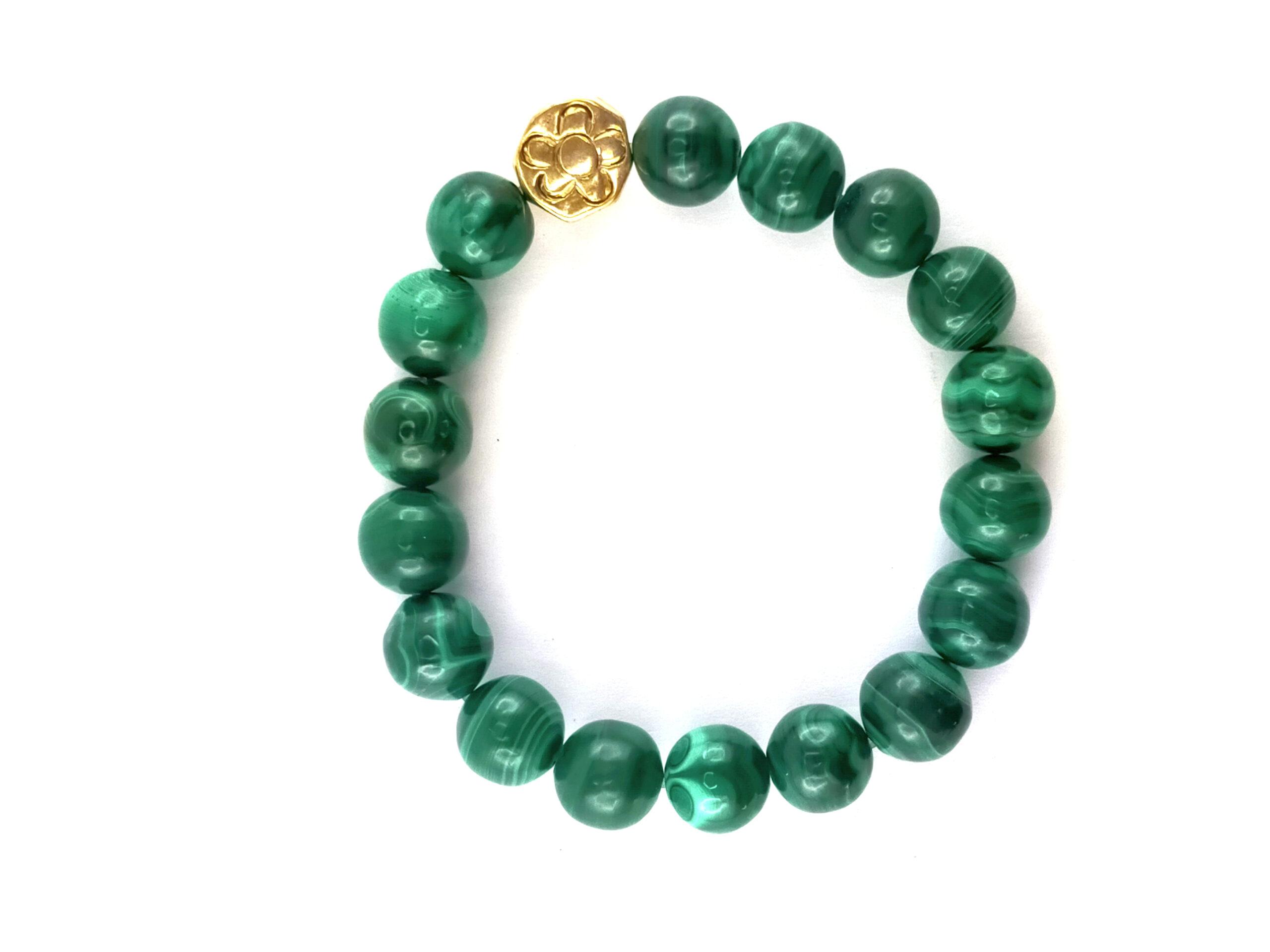 Montage sur élastique, 18 cm, perles de 12 mm, cache noeud en métal doré motif fleur