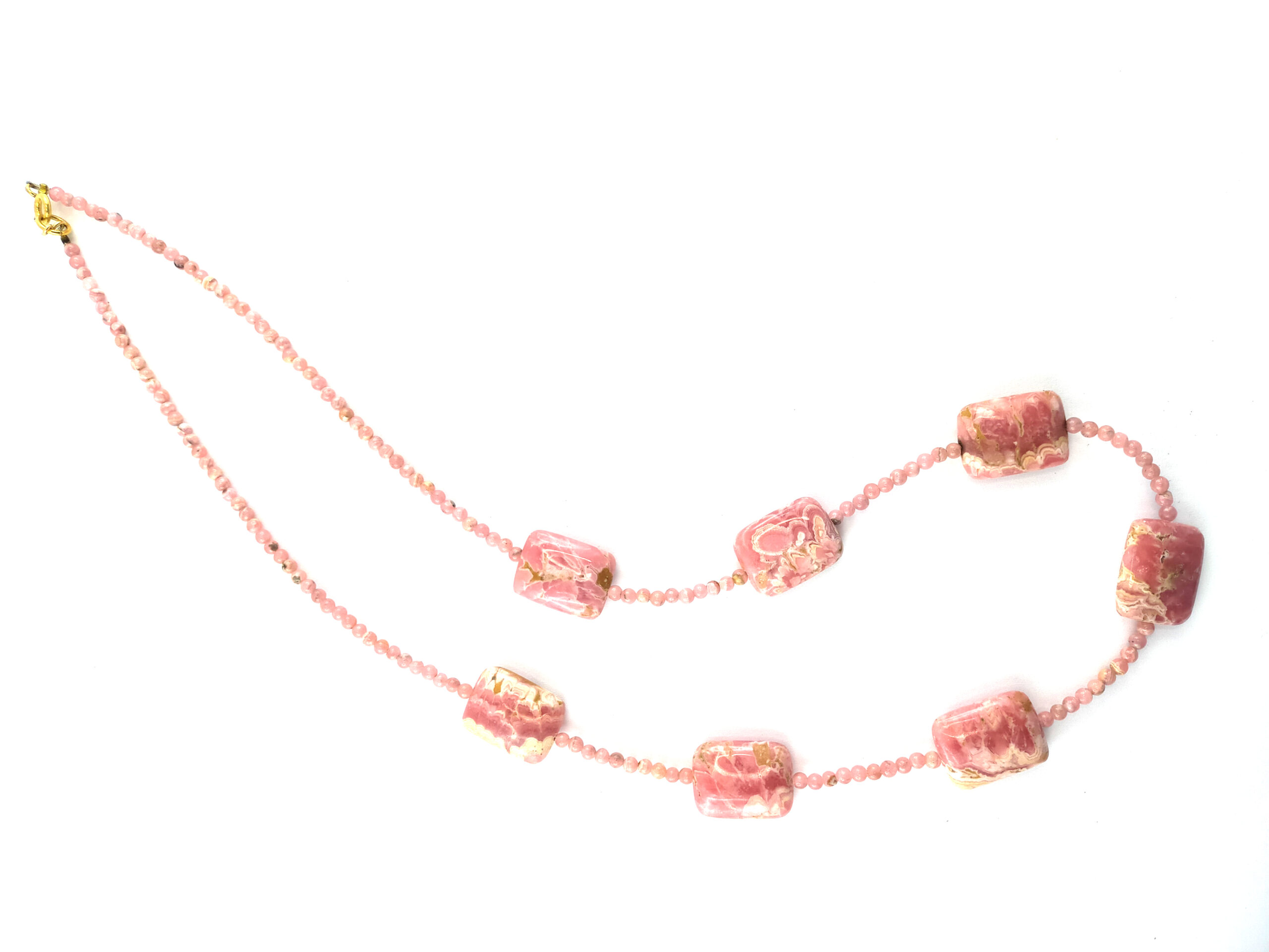 Montage sur câble, 60 cm, avec perles 3mm en rhodochrosite et rectangles 20×15 mm; fermoir anneau ressort en plaqué or
