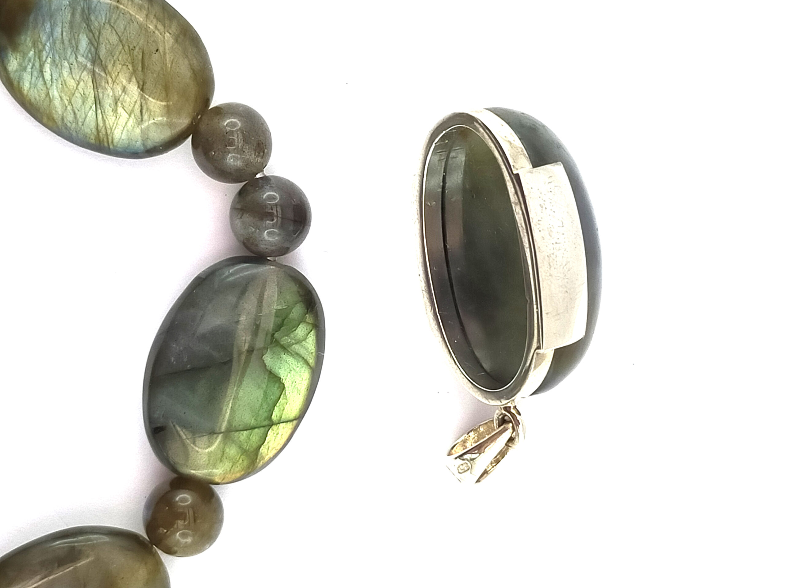 Pendentif en argent 925, d’un poids de 10 g, avec un cabochon ovale 25×15 en labradorite
