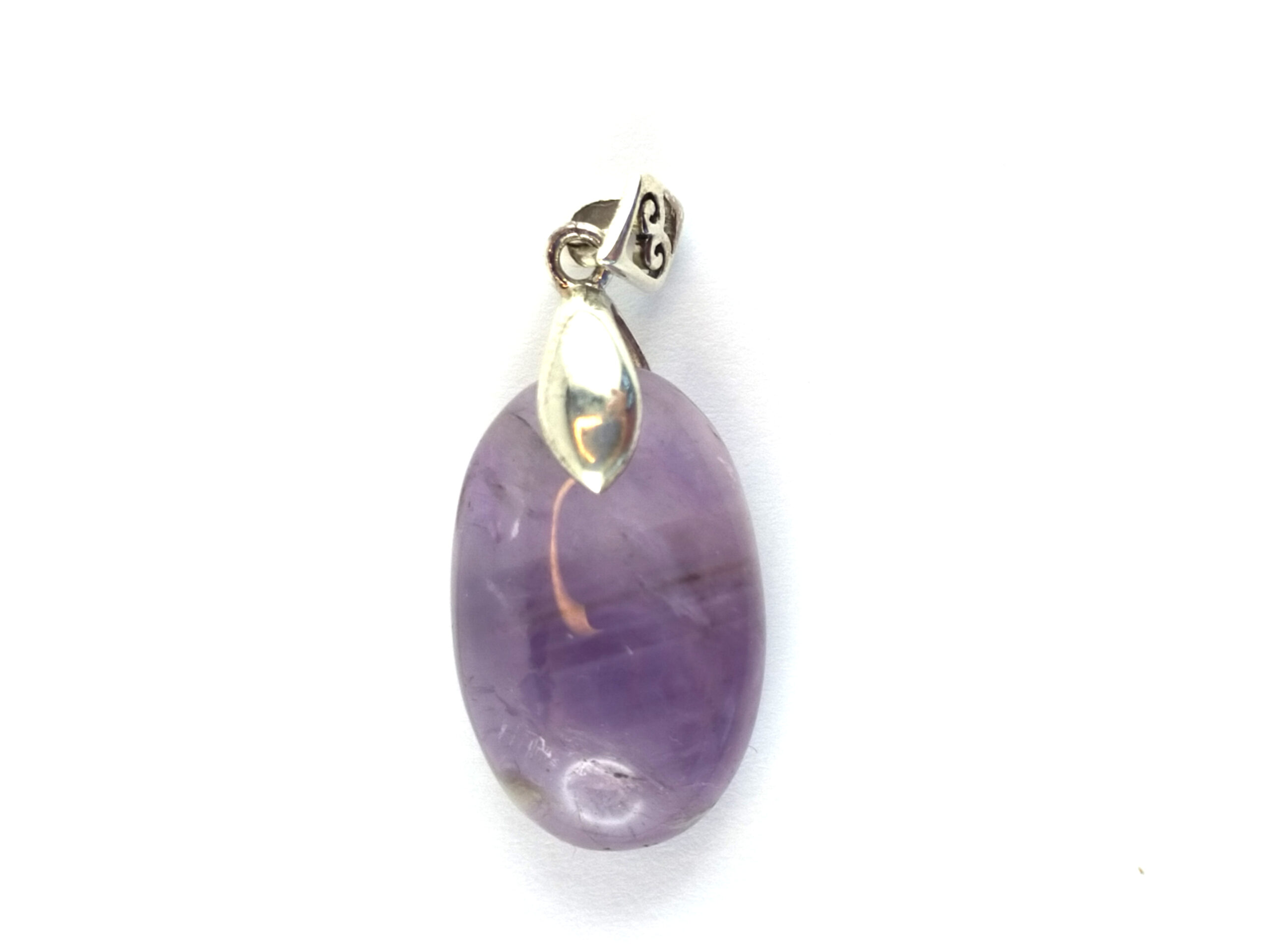Pendentif pierre percée en argent 925, d’un poids de 7,4 g, avec un cabochon ovale 25×17 en améthyste claire